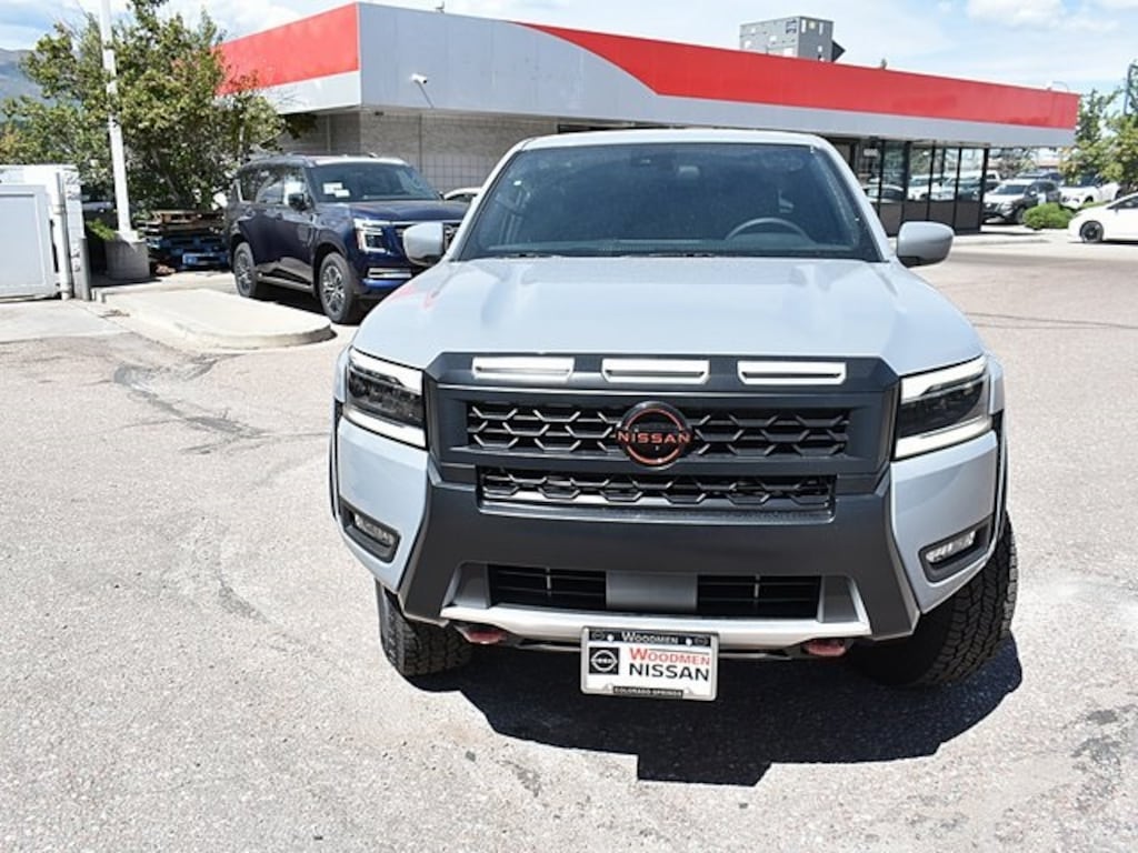 2025 Nissan Frontier PRO-4X New Ownership and a New Way of Business!! This vehicle features: 17" Painted Alloy Wheels, 3.692 Axle Ratio, 4-Wheel Disc Brakes, 6 Speakers, ABS brakes, Air Conditioning, Alloy wheels, AM/FM radio: SiriusXM, Anti-whiplash front head restraints, Auto High-beam Headlights, Automatic temperature control, Blind Spot Warning, Brake assist, Bumpers: body-color, Delay-off headlights, Driver door bin, Driver vanity mirror, Dual front impact airbags, Dual front side impact airbags, Electronic Stability Control, Emergency communication system, Front anti-roll bar, Front Bucket Seats, Front Center Armrest, Front dual zone A/C, Front fog lights, Front reading lights, Front wheel independent suspension, Fully automatic headlights, Illuminated entry, Knee airbag, Leather Shift Knob, Leather steering wheel, Low tire pressure warning, Occupant sensing airbag, Overhead airbag, Overhead console, Panic alarm, Passenger door bin, Passenger vanity mirror, Power door mirrors, Power driver seat, Power passenger seat, Power steering, Power windows, PRO Embroidered Premium Cloth Seat Trim, Radio data system, Radio: SXM/AM/FM/AUX/USB Audio System, Rear anti-roll bar, Rear seat center armrest, Rear side impact airbag, Rear step bumper, Remote keyless entry, Security system, Speed control, Speed-sensing steering, Split folding rear seat, Steering wheel mounted audio controls, Tachometer, Telescoping steering wheel, Tilt steering wheel, Traction control, Trip computer, Variably intermittent wipers, Voltmeter, and Wireless Apple CarPlay/Wireless Android Auto. Price includes: $1000 - Nissan CR MY25 Frontier (Excl. S) Bonus Cash (Denver) - October $3500 - Nissan Customer Cash $500 - Nissan MY25 Frontier Selldown Bonus Cash