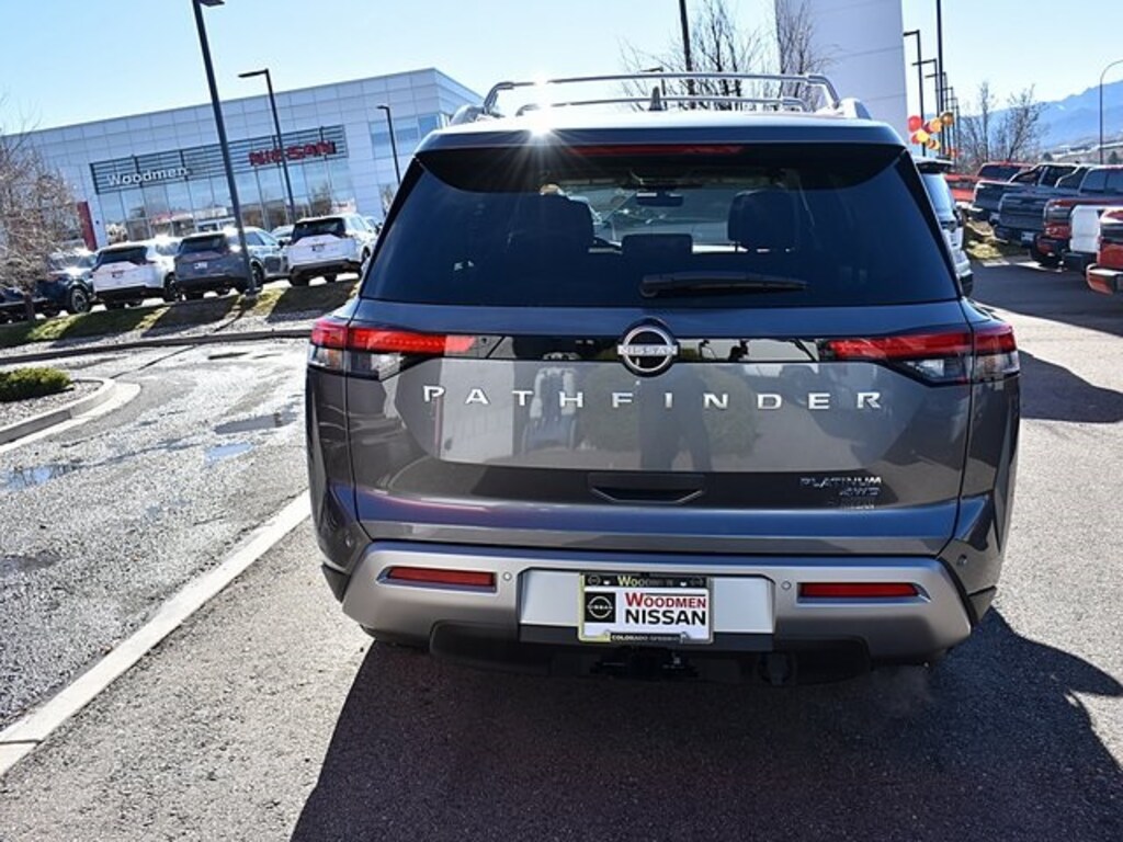 2025 Nissan Pathfinder Platinum New Ownership and a New Way of Business!! This vehicle features: Cargo Package (Cargo Area Protector, Cargo Net, and First Aid), 13 Speakers, 3rd row seats: bench, 4-Wheel Disc Brakes, ABS brakes, Air Conditioning, Alloy wheels, AM/FM radio: SiriusXM, Auto High-beam Headlights, Auto tilt-away steering wheel, Auto-dimming Rear-View mirror, Automatic temperature control, Bench Seat Carpeted Floor Mats (set of 4), Bodyside moldings, Bose Premium Audio System, Brake assist, Bumpers: body-color, Climate Controlled Front Bucket Seats, Cross Bars, Delay-off headlights, Driver door bin, Driver vanity mirror, Dual front impact airbags, Dual front side impact airbags, Electronic Stability Control, Emergency communication system, Exterior Parking Camera Rear, Four wheel independent suspension, Front anti-roll bar, Front Bucket Seats, Front Center Armrest, Front dual zone A/C, Front reading lights, Fully automatic headlights, Garage door transmitter: HomeLink, Heads-Up Display, Heated door mirrors, Heated front seats, Heated rear seats, Heated steering wheel, Illuminated entry, Knee airbag, Leather steering wheel, Low tire pressure warning, Memory seat, Navigation system: NissanConnect with Navigation and Services, NissanConnect featuring Apple CarPlay and Android Auto, NissanConnect with Navigation and Services, Occupant sensing airbag, Outside temperature display, Overhead airbag, Overhead console, Panic alarm, Passenger door bin, Passenger vanity mirror, Power door mirrors, Power driver seat, Power Liftgate, Power moonroof, Power passenger seat, Power steering, Power windows, Radio data system, Radio: AM/FM Audio System, Rain sensing wipers, Rear air conditioning, Rear anti-roll bar, Rear reading lights, Rear seat center armrest, Rear side impact airbag, Rear window defroster, Rear window wiper, Reclining 3rd row seat, Remote keyless entry, Security system, Semi-Aniline Leather-Appointed Seating Surfaces, Speed control, Speed-sensing steering, Speed-Sensitive Wipers, Split folding rear seat, Spoiler, Steering wheel memory, Steering wheel mounted audio controls, Tachometer, Telescoping steering wheel, Tilt steering wheel, Traction control, Trip computer, Turn signal indicator mirrors, Variably intermittent wipers, Ventilated front seats, and Wheels: 20" x 8J Machined Alloy. Price includes: $5000 - Nissan Customer Cash