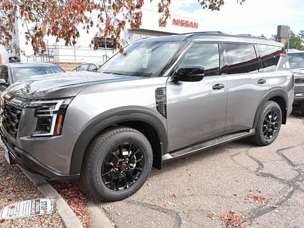2026 Nissan Armada PRO-4X New Ownership and a New Way of Business!! This vehicle features: 12 Speakers, 3rd row seats: split-bench, 4-Wheel Disc Brakes, ABS brakes, Adaptive suspension, Air Conditioning, Alloy wheels, AM/FM radio: SiriusXM w/360L, Anti-whiplash front head restraints, Apple CarPlay/Android Auto, Auto High-beam Headlights, Auto tilt-away steering wheel, Auto-dimming door mirrors, Auto-dimming Rear-View mirror, Auto-leveling suspension, Automatic temperature control, Brake assist, Bumpers: body-color, Compass, Delay-off headlights, Driver door bin, Driver vanity mirror, Dual front impact airbags, Dual front side impact airbags, Electronic Stability Control, Emergency communication system: NissanConnect Services, Four wheel independent suspension, Front anti-roll bar, Front Bucket Seats, Front Center Armrest, Front dual zone A/C, Front fog lights, Front reading lights, Fully automatic headlights, Garage door transmitter: myQ Connected Garage, Genuine wood dashboard insert, Heated door mirrors, Heated Front Bucket Seats, Heated front seats, Heated steering wheel, HVAC memory, Illuminated entry, Knee airbag, Leather steering wheel, Low tire pressure warning, Memory seat, Navigation system: Google Maps, Occupant sensing airbag, Outside temperature display, Overhead airbag, Overhead console, Panic alarm, Passenger door bin, Passenger vanity mirror, Power door mirrors, Power driver seat, Power Liftgate, Power passenger seat, Power steering, Power windows, PRO-4X Leather Quilted Insert Seat Trim, Radio: NissanConnect w/SiriusXM 360L, Rain sensing wipers, Rear air conditioning, Rear anti-roll bar, Rear reading lights, Rear seat center armrest, Rear window defroster, Rear window wiper, Reclining 3rd row seat, Remote keyless entry, Security system, Speed control, Speed-sensing steering, Speed-Sensitive Wipers, Split folding rear seat, Spoiler, Steering wheel memory, Steering wheel mounted audio controls, Tachometer, Telescoping steering wheel, Tilt steering wheel, Traction control, Trip computer, Turn signal indicator mirrors, Variably intermittent wipers, Voltmeter, and Wheels: 20" x 8.5J Painted PRO-4X Alloy.