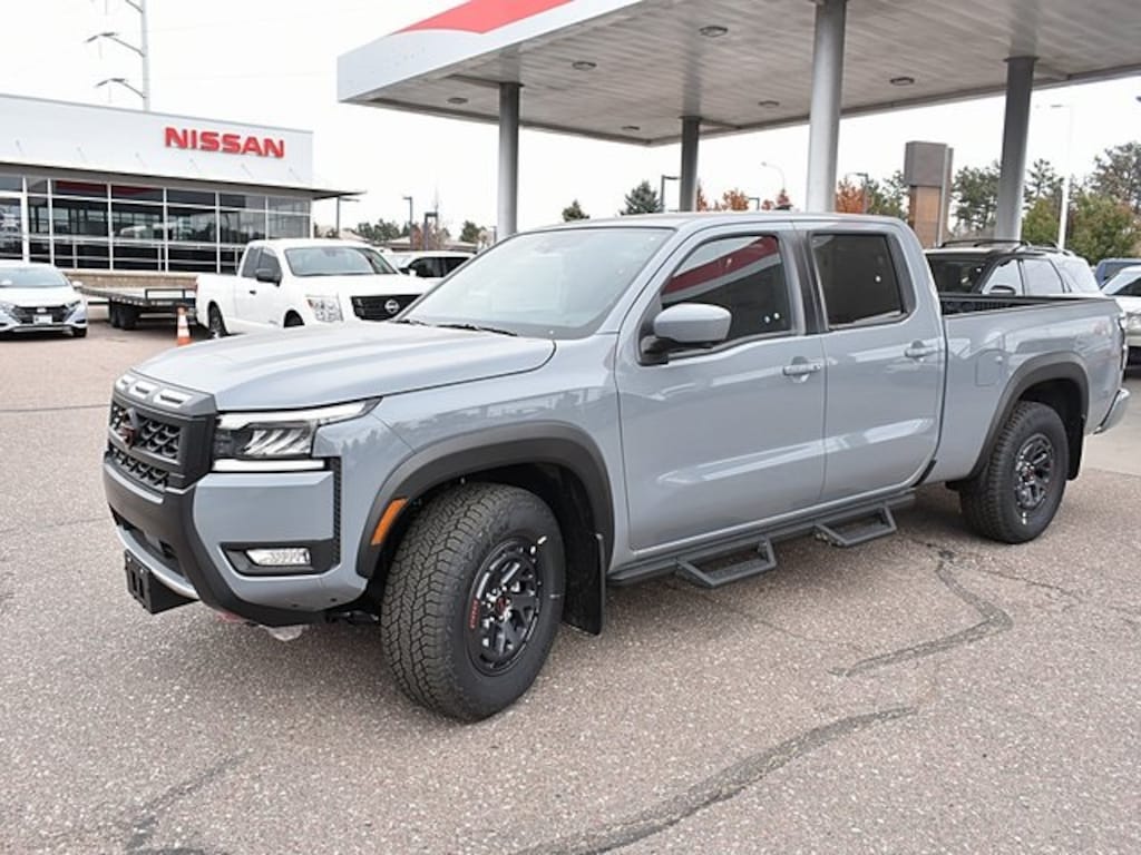2026 Nissan Frontier PRO-4X New Ownership and a New Way of Business!! This vehicle features: 17" Painted Alloy Wheels, 3.692 Axle Ratio, 4-Wheel Disc Brakes, 6 Speakers, ABS brakes, Air Conditioning, Alloy wheels, AM/FM radio: SiriusXM, Anti-whiplash front head restraints, Auto High-beam Headlights, Automatic temperature control, Blind Spot Warning, Brake assist, Bumpers: body-color, Delay-off headlights, Driver door bin, Driver vanity mirror, Dual front impact airbags, Dual front side impact airbags, Electronic Stability Control, Emergency communication system, Front anti-roll bar, Front Bucket Seats, Front Center Armrest, Front dual zone A/C, Front fog lights, Front reading lights, Front wheel independent suspension, Fully automatic headlights, Heated Front Bucket Seats, Heated front seats, Heated steering wheel, Illuminated entry, Knee airbag, Leather steering wheel, Low tire pressure warning, Occupant sensing airbag, Overhead airbag, Overhead console, Panic alarm, Passenger door bin, Passenger vanity mirror, Power door mirrors, Power driver seat, Power passenger seat, Power steering, Power windows, PRO Embroidered Premium Cloth Seat Trim, Radio data system, Radio: SXM/AM/FM/AUX/USB Audio System, Rear anti-roll bar, Rear seat center armrest, Rear side impact airbag, Rear step bumper, Remote keyless entry, Security system, Speed control, Speed-sensing steering, Split folding rear seat, Steering wheel mounted audio controls, Tachometer, Telescoping steering wheel, Tilt steering wheel, Traction control, Trip computer, Variably intermittent wipers, Voltmeter, and Wireless Apple CarPlay/Wireless Android Auto. Price includes: $1000 - Nissan CR MY25 Frontier (Excl. S) Bonus Cash (Denver) - December $2500 - Nissan Customer Cash