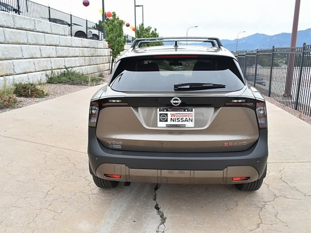 2026 Nissan Kicks SR 27/34 City/Highway MPG New Ownership and a New Way of Business!! This vehicle features: Cold Weather Package (Heated Front Seats, Heated Mirrors, and Rear Floor Heater Ducts), SR Premium Package (Bose 10 -Speaker Audio, Driver Seat-Mounted Supplemental Air Bag, Heated Steering Wheel, and Panoramic Moonroof), 17" Alloy Wheels, 19" Alloy Wheels, 4-Wheel Disc Brakes, 6 Speakers, ABS brakes, Air Conditioning, Alloy wheels, AM/FM radio, Auto High-beam Headlights, Automatic temperature control, AWD Cargo Mat, Brake assist, Bumpers: body-color, Carpeted Floor Mats, Crossbars, Delay-off headlights, Driver door bin, Driver vanity mirror, Dual front impact airbags, Dual front side impact airbags, Electronic Stability Control, Emergency communication system: NissanConnect Services, Exterior Parking Camera Rear, Four wheel independent suspension, Front anti-roll bar, Front Bucket Seats, Front Center Armrest, Front reading lights, Fully automatic headlights, Garage door transmitter: myQ Connected Garage, Illuminated entry, Knee airbag, Leather Shift Knob, Leather steering wheel, Low tire pressure warning, NissanConnect featuring Apple CarPlay and Android Auto, Occupant sensing airbag, Outside temperature display, Overhead airbag, Overhead console, Panic alarm, Passenger door bin, Passenger vanity mirror, Power door mirrors, Power steering, Power windows, Radio data system, Radio: AM/FM/SiriusXM Audio System, Rear anti-roll bar, Rear reading lights, Rear seat center armrest, Rear side impact airbag, Rear window defroster, Rear window wiper, Remote keyless entry, Security system, Speed control, Speed-sensing steering, Splash Guards, Split folding rear seat, Spoiler, Sport Leatherette w/Cloth Insert Seat Trim, Sport steering wheel, Steering wheel mounted audio controls, Tachometer, Telescoping steering wheel, Tilt steering wheel, Traction control, Trip computer, Turn signal indicator mirrors, and Variably intermittent wipers. Price includes: $500 - Nissan MY26 Kicks SR and SV Customer Cash