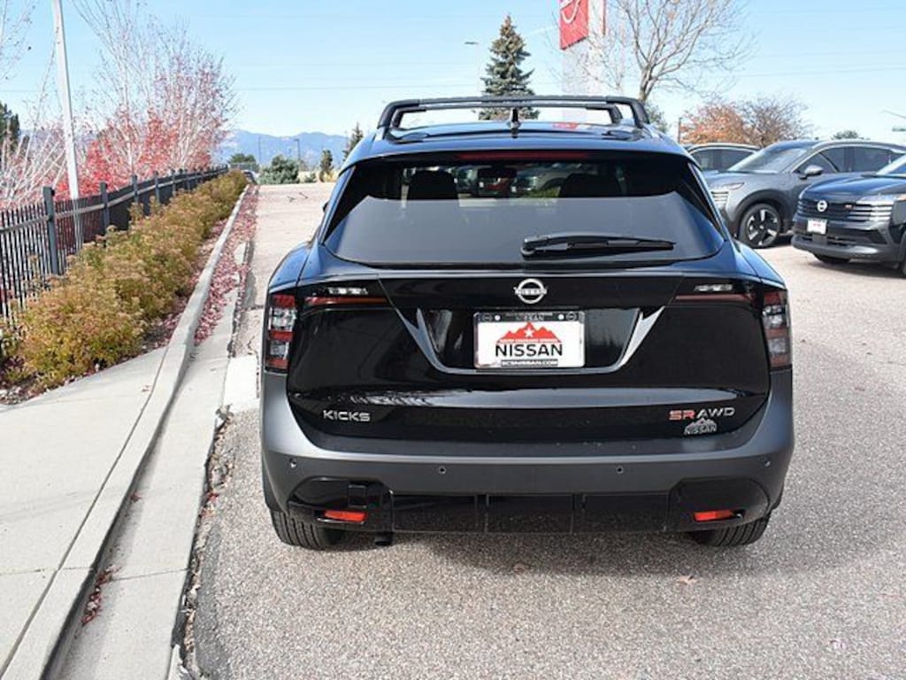 New Price! 2026 Nissan Kicks SR Super Black AWD CVT with Xtronic 2.0L DOHC 27/34 City/Highway MPG Your final price is based on dealer discounts plus applicable rebates for the zip code where the vehicle will be titled. For the maximum discount, you must purchase from in-stock inventory and finance with Nissan Motor Acceptance Corp (NMAC). NMAC financing rebates, APR and lease rates can vary, based on your zip code. While we make every effort to ensure the data listed here is correct, there may be instances where some of the offers, options or vehicle features may be listed incorrectly as we get data from multiple data sources. Dealer is not responsible for miss pricing vehicles online. Please verify any information in question with a dealership sales representative. Must qualify for all applicable rebates. Prices include all active discounts and $799 dealer handling fees. Exclusion may apply. Tax, tag, dealer installed accessories, electronic filing fee and title extra. See dealer for details. Price includes: $1500 - Nissan Customer Cash. Exp. 05/04/2026
