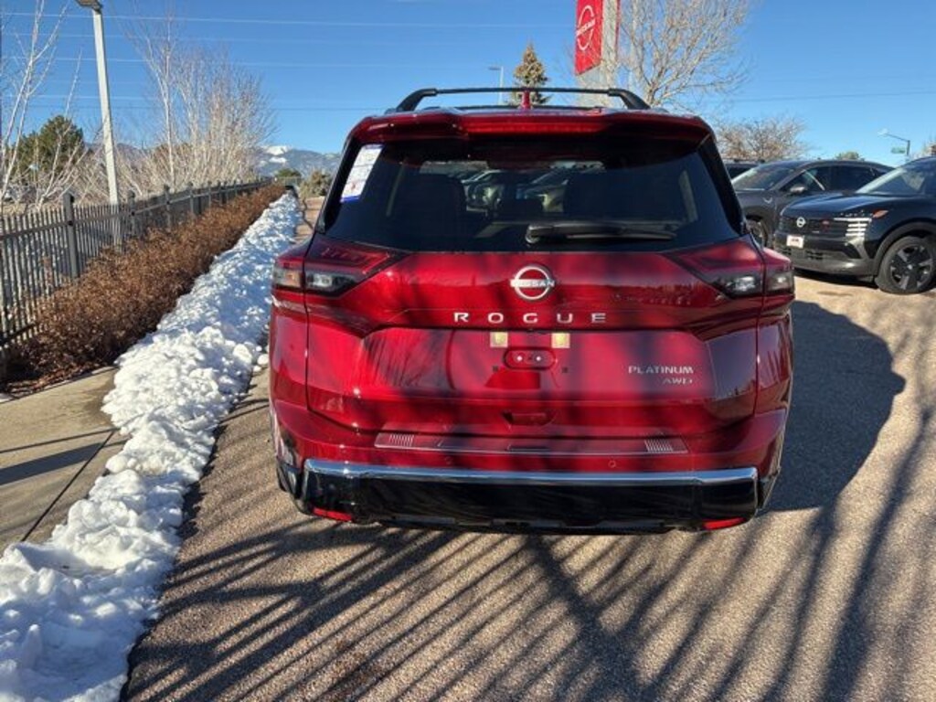 2026 Nissan Rogue Platinum Scarlet AWD CVT with Xtronic 1.5L DOHC 28/35 City/Highway MPG Your final price is based on dealer discounts plus applicable rebates for the zip code where the vehicle will be titled. For the maximum discount, you must purchase from in-stock inventory and finance with Nissan Motor Acceptance Corp (NMAC). NMAC financing rebates, APR and lease rates can vary, based on your zip code. While we make every effort to ensure the data listed here is correct, there may be instances where some of the offers, options or vehicle features may be listed incorrectly as we get data from multiple data sources. Dealer is not responsible for miss pricing vehicles online. Please verify any information in question with a dealership sales representative. Must qualify for all applicable rebates. Prices include all active discounts and $799 dealer handling fees. Exclusion may apply. Tax, tag, dealer installed accessories, electronic filing fee and title extra. See dealer for details. Price includes: $3500 - Nissan Customer Cash. Exp. 03/02/2026