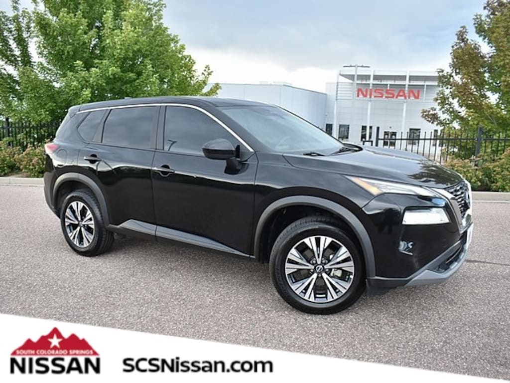 Get behind the wheel in our 2023 Nissan Rogue SV AWD featured in Super Black! Powered by a TurboCharged 1.5 Liter VC 3 Cylinder delivering 201hp tethered to a paddle-shifted CVT for energetic action. You can also use Sport and Eco modes in this All Wheel Drive SUV, which scores nearly 35mpg on the highway with agile handling for the city. Our Rogue's revved-up styling turns heads with LED lighting, heated power mirrors, a sporty rear spoiler, and bold 18-inch alloy wheels.